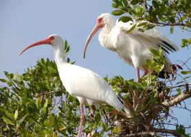 two white ibis birds...